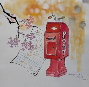 그리움을 가득 담은 편지 위에